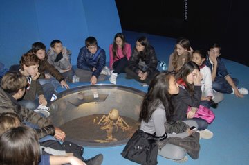 Che cosa si fa   In mostra. un operatore-narratore accompagna la classe in un percorso visivo, tattile e olfattivo che illustra ai bambini, in forma di narrazione, come era costituito un villaggio dell'Età del Bronzo e come vivevano i suoi abitanti; i viaggi per mare alla ricerca di terre ricche di metalli pregiati e lo scambio di beni di lusso fra le genti di Montevetrano e le regioni del mondo antico; i traffici commerciali e i rapporti culturali fra Etruschi, Greci e Italici a Fratte; la nascita della città romana di Salernum. Di supporto alla narrazione sono sia i reperti esposti in mostra sia oggetti ed elementi naturali, che è possibile non solo vedere, ma anche toccare e annusare. Questi oggetti estratti, di volta in volta, da una bisaccia, consentiranno ai piccoli visitatori di ridurre l'enorme distanza temporale e culturale che li separa dal mondo protostorico e dalla città antica.